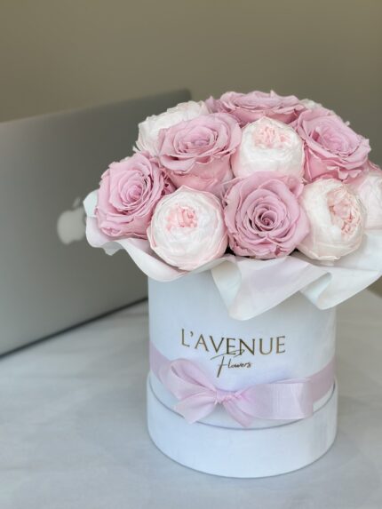 W Theflowerbox tworzymy luksusowe kompozycje z wiecznych róż, które zachowują swoje naturalne piękno przez wiele miesięcy.
