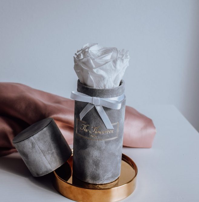 Biała wieczna róża | Mini szary box