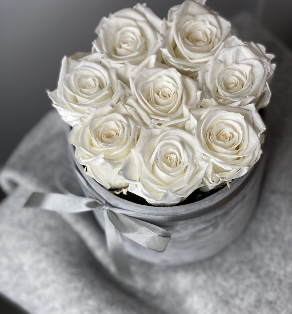 Niezwykła kolekcja wiecznych róż w naszych ekskluzywnych, welurowych pudełkach. Nasze wieczne róże to nie tylko kwiaty, to trwała manifestacja piękna. Dzięki innowacyjnej technologii stabilizacji żywych kwiatów, róże zachowują swoją świeżość i wyjątkowy urok na lata.