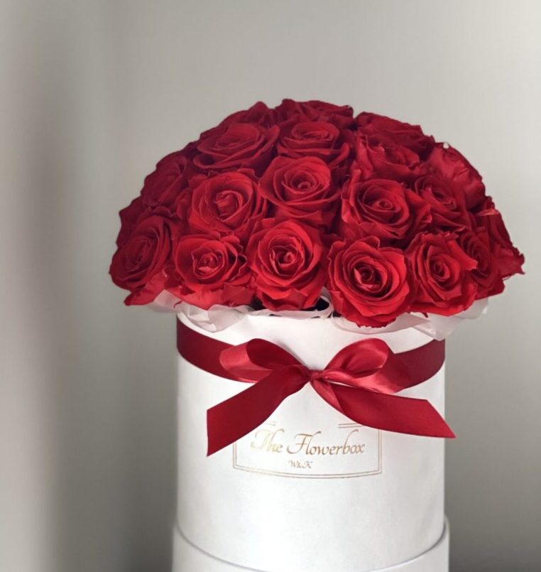 Czerwone wieczne róże | Duży biały box
