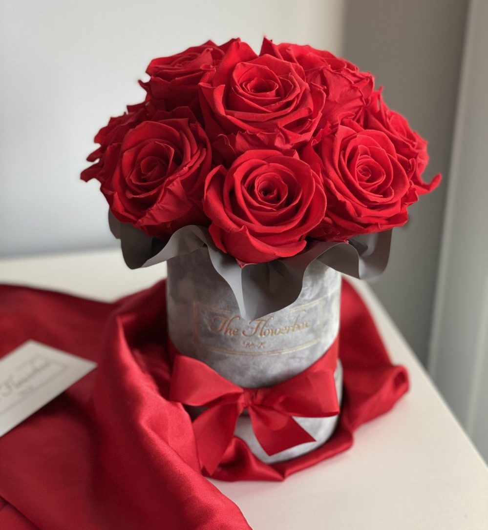 Czerwone wieczne róże | Mały szary box
