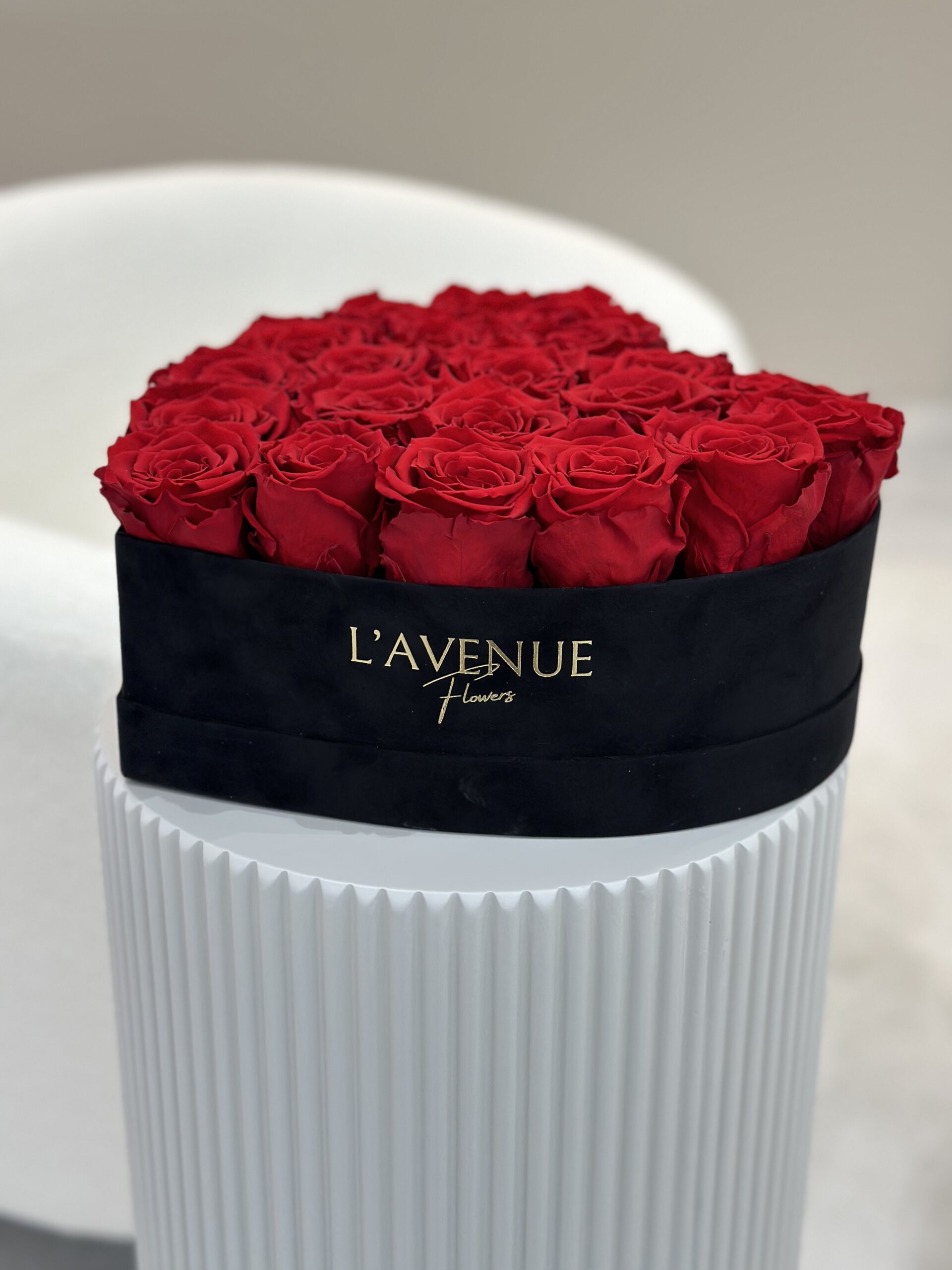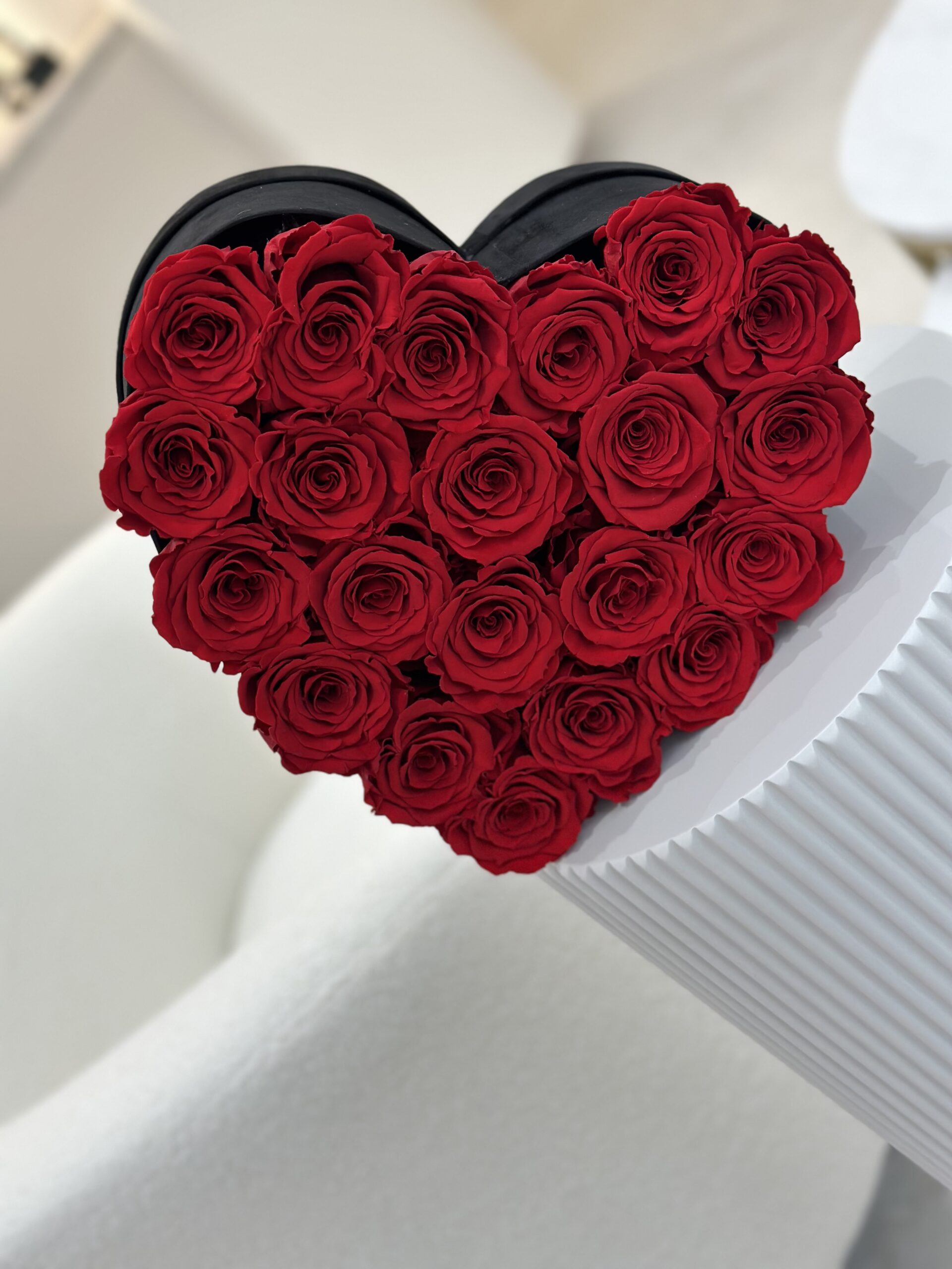 Strona główna Flower Box Czerwone wieczne róże | Czarny box Serce