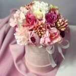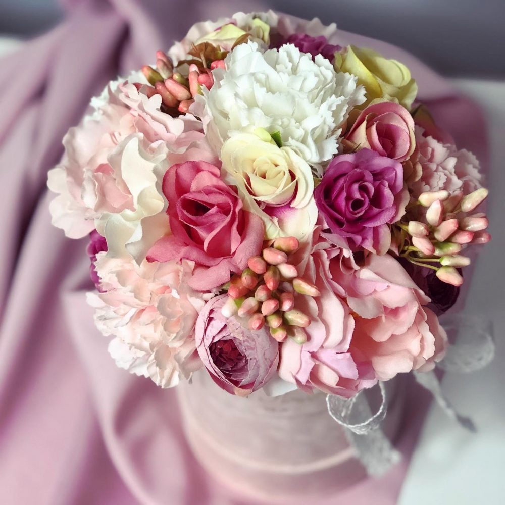 Kompozycja sztucznych kwiatów | Mały różowy box