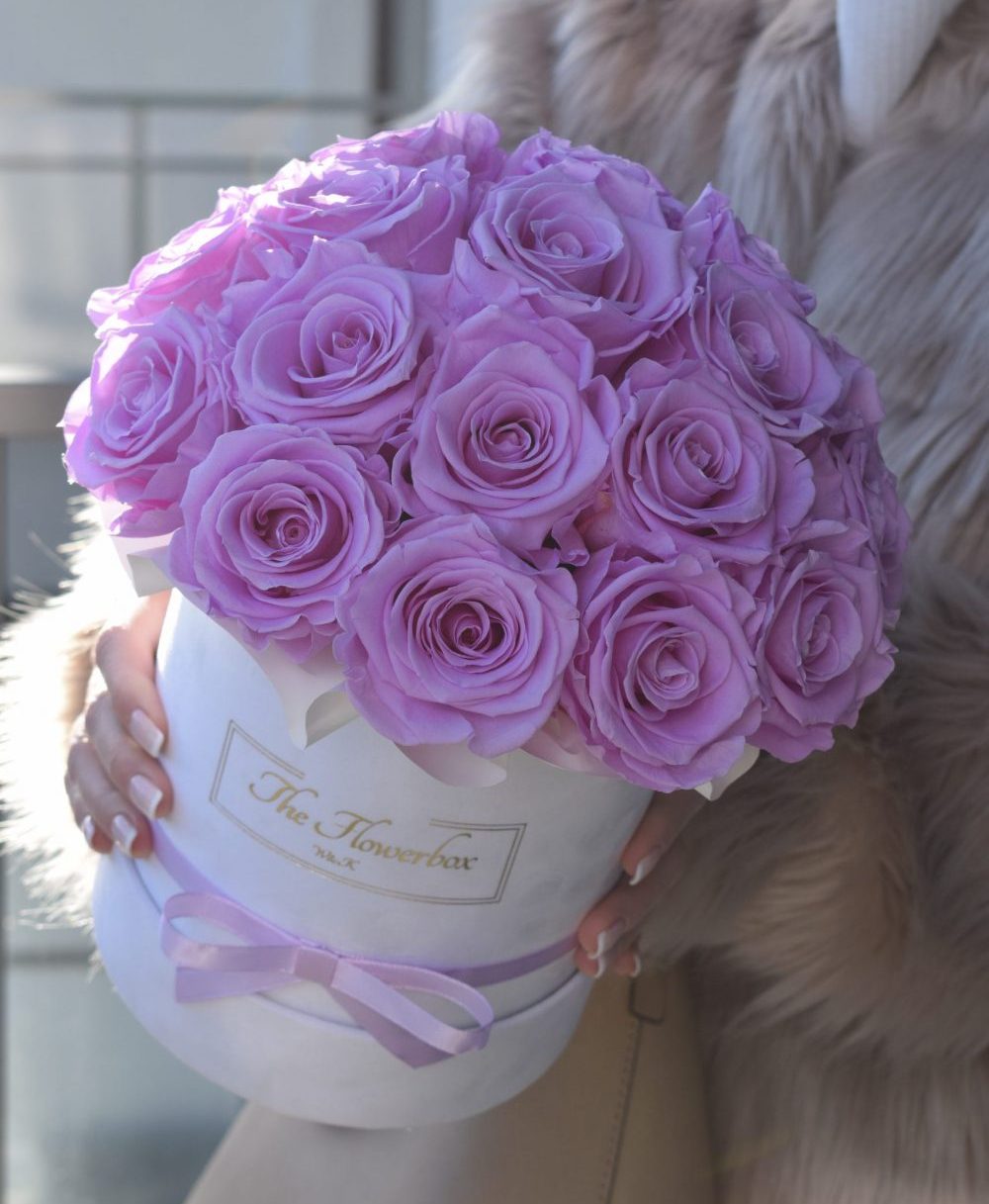 Lawendowe wieczne róże | Średni biały box