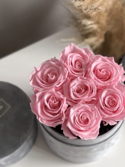 Niezwykła kolekcja wiecznych róż w naszych ekskluzywnych, welurowych pudełkach. Nasze wieczne róże to nie tylko kwiaty, to trwała manifestacja piękna. Dzięki innowacyjnej technologii stabilizacji żywych kwiatów, róże zachowują swoją świeżość i wyjątkowy urok na lata.