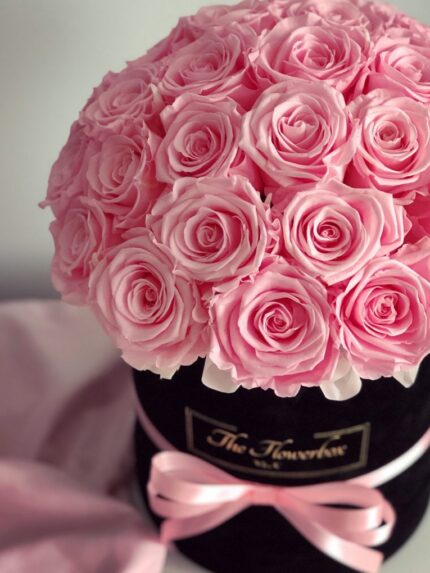 Różowe wieczne róże | Duży czarny box