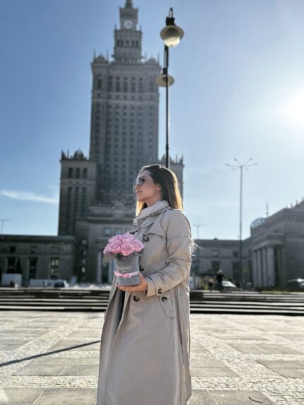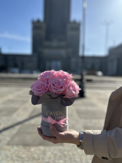 Różowe wieczne róże | Mały szary box