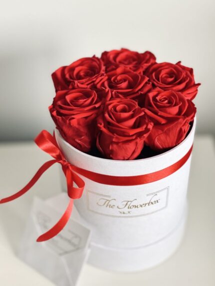 Czerwone wieczne róże | Średni biały box
