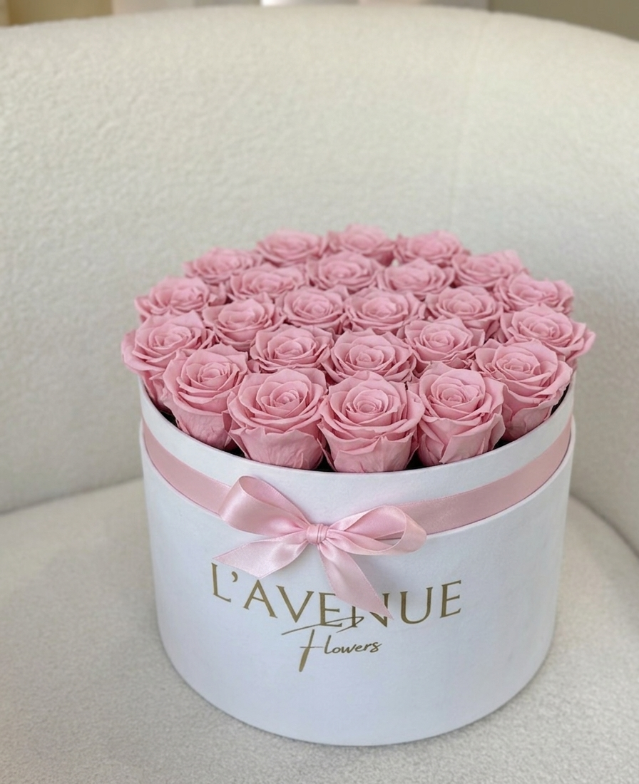 Wieczne różowe róże w mega welurowym pudełku. Wyjątkowy bukiet kwiatów, który pozostanie świeży przez 2 lata. Wieczne róże są to żywe kwiaty, które przeszły proces stabilizacji, dzięki którym pozostaną świeże na długo.
