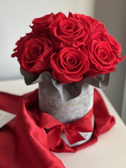 Czerwone wieczne róże | Mały szary box