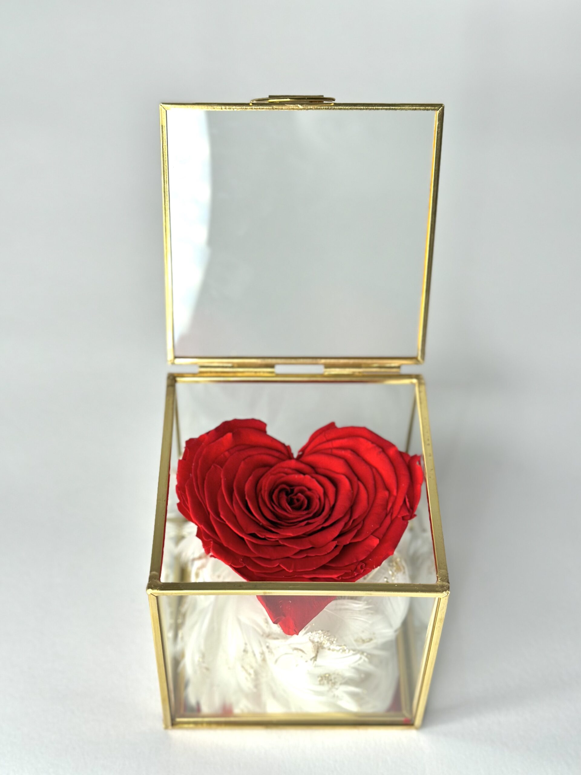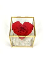 Odkryj niezwykłą romantyczną wizję z naszą ekskluzywną Różą w kształcie serca zamkniętą w szklanej szkatułce. Ta trwała i piękna kompozycja to idealny prezent na wyjątkowe okazje, od rocznic po wyznania miłości. Dzięki zaawansowanej technologii żywej róży, która została poddana stabilizacji, zachowuje ona swój naturalny blask przez długie lata.